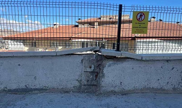 Ankara'da Şehit Ali Doğan Ortaokulu'nun istinat duvarının kayması ve bahçede çökme tehlikesi bulunması nedeniyle, geçişi engellemek için riskli bölgeye okul sıralarıyla şerit çekildi. Veliler, önlemlerin yetersiz olduğunu belirterek, duvarın onarılmasını istedi.