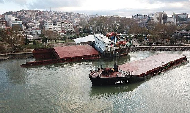 Zonguldak’ın Ereğli ilçesindeki fırtınadan dolayı ikiye ayrılan ve karaya oturan ‘Pallada’ isimli kuru yük gemisinin mürettebatı, sabah saatlerinde sahilde bulunan geminin enkazına geldi.