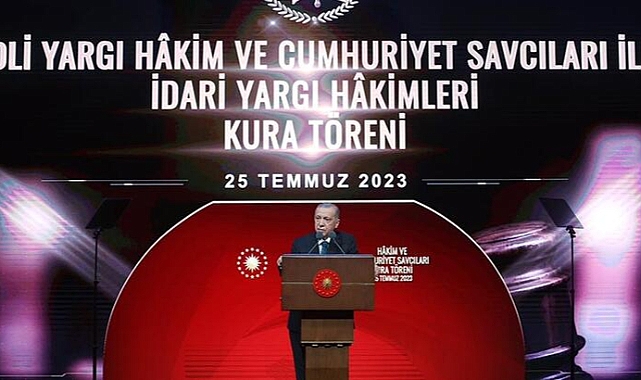 Cumhurbaşkanı Recep Tayyip Erdoğan, Cumhurbaşkanlığı Külliyesi'nde düzenlenen Hakimler ve Savcılar Atama Töreni'nde konuştu. Erdoğan, hakim ve savcı adaylarının fakültelerinden mezun olduktan sonra zorlu bir adaylık dönemini başarıyla tamamladığını belirterek, "Kadınların geçen dönem olduğu gibi yine başarılarıyla en ön sıralarda yer almasından duyduğum mutluluğu ayrıca belirtmek istiyorum. Bugün kura çekerek görevlerine başlayacak olan toplam 1102 adli yargı hakimi ve cumhuriyet savcısı ile idari yargı hakimini tebrik ediyorum. Şu an Türkiye sathında 15 bin 412'si cumhuriyet savcısı, 7 bin 409'u hakim olmak üzere toplam 22 bin 821 hakim ve savcı görev yapıyor. Bugünkü kura törenimizle birlikte bu sayıyı 23 bin 923'e çıkarmış oluyoruz. Buradaki her bir hakim ve savcı adayımızı şehit Cumhuriyet Savcımız Mehmet Selim Kiraz'ın misyonunu taşınmaya namzet bir kardeşimiz olarak görüyorum. Şehit savcımızın devrettiği adalet sancağını sizler yücelteceksiniz. Bununla kalmayacak, inşallah gelecek nesillere kutlu bir emanet gibi sizler teslim edeceksiniz. Bu vesileyle teröristler tarafından makamında alçakça şehit edilen Mehmet Selim Kiraz başta olmak üzere adaletin tecellisi uğuruna çalışırken vefat eden, şehit düşen tüm yargı mensuplarımızı rahmetle yad ediyorum. Rabbim tüm şehitlerimizin makamını ali, mekanını cennet eylesin" dedi.'DEMOKRASİ VE HUKUK DEVLETİ STANDARTLARINI YÜKSELTTİK'Erdoğan, Türkiye'nin dört bir yanında fedakarca görev yapan adalet teşkilatının tüm fertlerine ülke ve millet adına teşekkürlerini ilettiğini ifade ederek, "Adalet hizmetlerinin hızlı ve etkin bir şekilde yürütülmesi için bugüne kadar omuz omuza mücadele verdik. Milletimizin gözünde adliye kapısını adaletin kapısı haline getirmek için hep beraber çaba harcadık, ter döktük. Hayata geçirdiğimiz her değişiklikle ülkemizin demokrasi ve hukuk devleti standartlarını daha da yükselttik. Göreve geldiğimizde ülkemizi 4 ana sütun üzerinde inşa edeceğimizi vaat etmiştik. Bunların da eğitim, sağlık, adalet, emniyet olduğunu demiştik. Aradan geçen 21 yılda ülkemizin içinde bulunduğu şartlar ve karşılaştığı sıkıntılar ne olursa olsun bu sözümüze sadakatle bağlı kaldık. Saymaya kalksak saatler sürecek reformları ve projeleri yürürlüğe geçirdik. Adalet teşkilatımızın eski günlerini bilenler Türkiye'nin nereden nereye geldiğinin takdirini daha net yapabiliyor. O dönemde görev yapan hakim ve savcılarımız hangi şartlar altında adalet dağıtmaya çalıştıklarını gayet iyi hatırlıyor. Ancak hafızayı beşer nisyan ile maluldür. Yani insanoğlu unutur. Buradan atılan adımları milletimize kısaca hatırlatmakta fayda görüyorum. Rakamlar Türkiye'nin son 21 yılda adalet hizmetlerinin kalitesinde aldığı mesafeyi inkarı mümkün olmayan bir şekilde ortaya koymaktadır. 2002 yılında 9 bin 349 olan hakim, savcı sayısını 2,5 kat artışla yaklaşık 24 bine çıkarttık. Adalet teşkilatımızın toplam personel sayısı ise 61 binden 190 bine yükseldi. Merdiven altlarında, adeta mahzeni andıran yerlerde adalet dağıtılan kötü manzaralara son verdik" diye konuştu.'MAHKEME SAYILARIMIZI ARTIRDIK'Erdoğan, inşa ettikleri 280 model adalet sarayıyla bu alandaki en önemli altyapı eksikliklerini giderdikleri vurgulayarak, "Yüksek yargı organlarımızı; mimarisi, teknolojik donanımları, imkanları ve diğer müştemilatıyla göz dolduran hizmet binalarına kavuşturduk. Mahkeme sayılarımızı adli yargıda yüzde 95, idari yargıda yüzde 45 oranında artırdık. Hataları asgariye indirecek ve temyiz mahkemelerindeki yığılmayı önleyecek şekilde bölge, adliye ve idare mahkemelerini devreye aldık. İstinaf mahkemelerinin faaliyete geçmesi ile birlikte Yargıtay Hukuk ve Ceza dairelerinin iş yükü yaklaşık yüzde 68 oranında azalmıştır. Yargı süreçlerini hem basitleştirdik hem kolaylaştırdık hem de hızlandırdık. UYAP bünyesinde sesli ve görüntülü bilişim sistemini yani SEGBİS'i kurduk. Hukuk yargılamalarına elektronik duruşma sistemini kazandırdık. Vatandaşlarımıza Anayasa Mahkemesi'ne bireysel başvuru yapabilme imkanı getirdik. Yıllardır demokratikleşme adına dillendirilen ama bir türlü yapılamayan askeri yargıyı kaldırarak askeri suçların sivil mahkemelerde görülmesini yine biz sağladık. Vatandaşlarımızın mesnetsiz ihbar ve şikayetler nedeniyle soruşturmaya uğramaması için lekelenmeme hakkını güçlendirdik. Yargı Reformu Stratejisi ve İnsan Hakları Eylem Planı ile yargıda ihtisaslaşmayı sağladık. Vergi suçları, bilişim suçları, finansal suçlar, sendikal uyuşmazlıklar ve kamulaştırma davaları gibi birçok alanda yeni ihtisas mahkemeleri kurduk. Uyuşmazlıkların, arabuluculuk ve uzlaştırma yöntemleri ile mahkeme süreci öncesinde kısa sürede ve daha az masrafla çözülmesini temin ettik" ifadelerini kullandı.'İNSAN KAYNAĞININ DAHA NİTELİKLİ YETİŞMESİNİ SAĞLIYORUZ'Erdoğan ayrıca, hafta sonu nöbetçi noterlik uygulamasını başlatarak vatandaşlara 7 gün hizmet verilmesini sağladıklarını hatırlatarak, "Yargıda hedef süre uygulamasıyla öngörülebilirliği artırdık, yargılamaların uzamasına sebebiyet veren durumları asgariye indirdik. Adalet teşkilatımızın mali ve özlük hakları ile ilgili beklentilerini karşıladık. İnfaz koruma memurlarının yıpranma paylarından, mübaşirlerimizin genel idare hizmetine alınmasına kadar nice soruna çözüm bulduk. Görevini mesai mefhumu olmadan yürüten adalet personeline nöbet ücreti imkanı sunduk. Gelen talepler doğrultusunda farklı dönemlerde hakim ve savcılarımızın özlük haklarında kayda değer iyileştirmeler yaptık. Geçen yıl ihdas ettiğimiz hakim ve savcı yardımcılığı müessesesi ile ada
