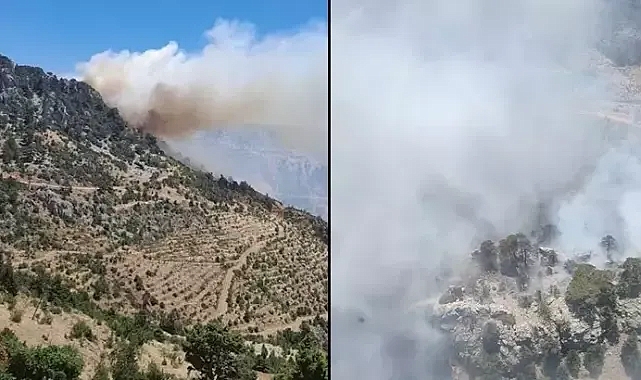 Mersin'in Bozyazı ilçesinde orman yangını çıktı. Ekiplerin alevlere müdahalesi sürüyor.