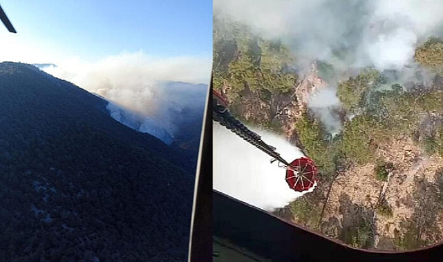 Bolu'nun Göynük ilçesinde dün akşam çıkan orman yangınına, havadan müdahale sürüyor.