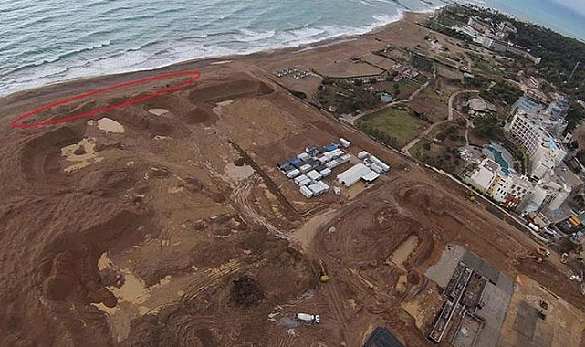 Firmanın, tahsis edilen alanın dışında olan kıyı kenar çizgisinin içerisinde ve tahsis şartnamesinde sunulan, uydu fotoğrafında da açıkça görülen çam ağaçlarını tamamen kestiği belirlendi. İnşaatın temel kazısı sırasında çıkan hafriyatı başka bir alana taşıması gereken firmanın, bunu yapmayarak, halkın kullanımına açık olması gereken kıyı kenar çizgisi içerisinde, denizin dalgalarının gelebileceği en son noktaya kadar dökerek, geçişleri engellediği görüldü. İşlemler sırasında verilen zarar da uydu görüntülerine yansıdı. Konuyla ilgili şikayet olmadığı için resmi bir işlemin yapılmadığı öğrenildi. FİRMANIN ORTAĞI KONUŞTU