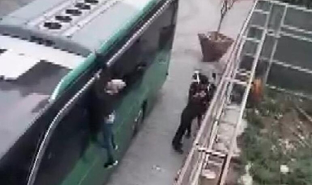Beyoğlu’nda otobüsün üstünde Yunanistan’a kaçmak isteyen yabancı uyruklu 2 kişi yakalandı. O anlar cep telefonu kamerasına yansıdı.