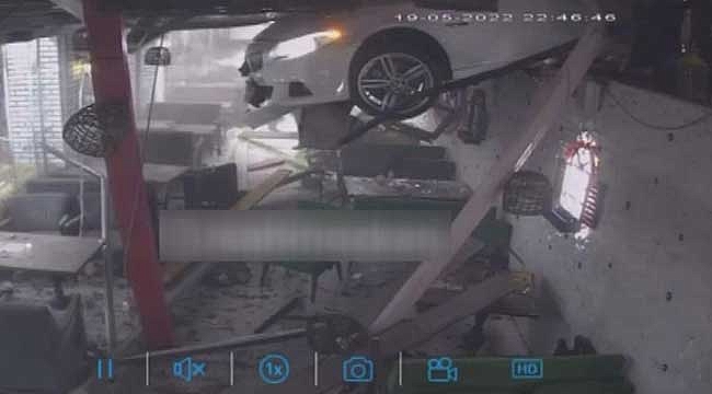 İşyerinin güvenlik kamerasına yansıyan görüntülerde otomobilin ön tarafının kafede içeri girmesiyle birlikte asma tavan çöküyor. Bu sırada müşteriler ile çalışanların panik içerisinde dışarıya kaçtıkları görüldü. Kaza ile ilgili soruşturma başlatıldı.