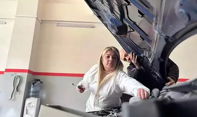 araç bakım servisini açan Sibel Akın, burada kaporta boyacılığına devam edip, 7 kişiye istihdam sağladı.
