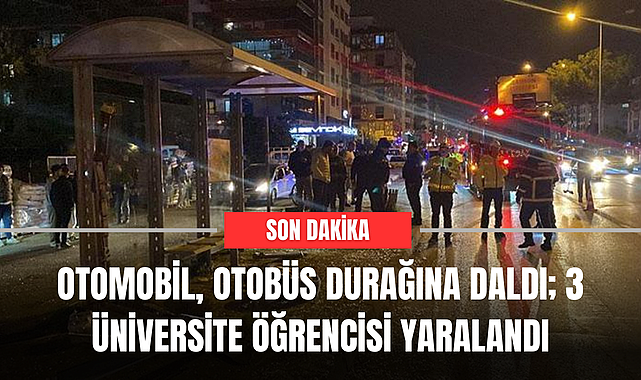 Otomobil, otobüs durağına daldı; 3 üniversite öğrencisi yaralandı