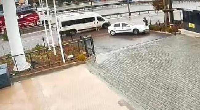 Kaza, 14 Şubat Pazartesi günü Çayırova D-100 Karayolu yan yolda meydana geldi. Yan yolda ilerleyen servis minibüsü aynı yönde ilerleyen otomobile arkadan çarptı. Çarpmanın etkisiyle otomobil yol kenarındaki tel çiftlere çarparak durabildi. Kaldırımda yürüyen kadın, otomobilin altında kalmaktan son anda kurtuldu. O anlar ise bir iş yerinin güvenlik kamerasına yansıdı.