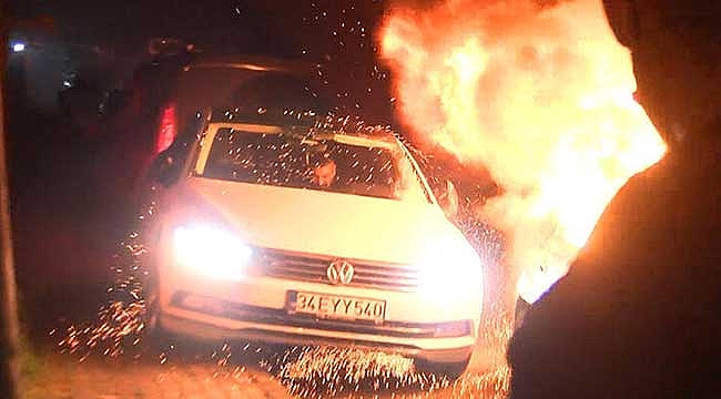 Küçükçekmece'de sokakta seyir halindeki otomobilde yangın çıktı. Sürücü son anda kendini dışarı atarken, alevler kısa sürede tüm otomobili sardı. Mahalle sakinleri, dar sokakta yükselen alevlerden otomobillerini kaçırmak için yarışa girdi. O sırada yaşanan ufak çaplı patlamalar korkuya neden oldu. Yangın, itfaiye ekiplerinin müdahalesiyle söndürüldü.