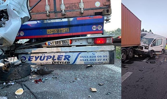 Otoyolda minibüs, otomobil ile 2 TIR'a çarptı