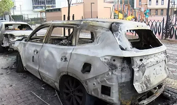 Olay, saat 03.30 sıralarında 50. Yıl Mahallesi'ndeki meydana geldi. İddiaya göre; kardeşinden para isteyen bir kişi olumsuz yanıt alınca telefonla aradığı abisini 'aracını yakacağım' diyerek tehdit etti. Olayın ardından dün gece parayı vermeyen kardeşin park halindeki cipi yandı. Araçta başlayan yangın kısa sürede büyüyerek cipin önünde ve arkasındaki 2 araca daha sıçradı. Alevleri görenlerin ihbarı üzerine olay yerine itfaiye ve polis ekipleri sevk edildi. İtfaiye ekipler alevlerin sardığı 3 araçtaki yangını kısa sürede söndürdü. Yangında kardeşin aracı kullanılmaz hale gelirken diğer iki araçta hasar oluştu. Olay yerine gelen polis ekipleri araçları kundaklayanları yakalamak için çalışma başlatırken 2 şüphelinin gerçekleştirdiği olay iş yerinin güvenlik kamerasına yansıdı. Görüntülerde kapüşonlu 2 kişinin sokakta yürüdüğü ve cipin yanmasının ardından koşarak uzaklaştıkları anlar yer alıyor.'KARDEŞİNE 'SENİN ARACINI YAKACAĞIM' DEMİŞ'Otomobili yangında zarar gören Emin Işık, "Gece saat 04.00 sıralarıydı, zil çaldı. Baktım arabam yanıyor. Muhtemelen kundaklama. Polisler tutanak tuttu, bekliyoruz sonuç ne olacak. Ortadaki araç sahibinin kardeşi para istemiş oda vermemiş. Ondan sonra böyle yapmışlar. Oda kardeşine 'senin aracını yakacağım' demiş. Gece böyle bir olay oldu" diye konuştu.