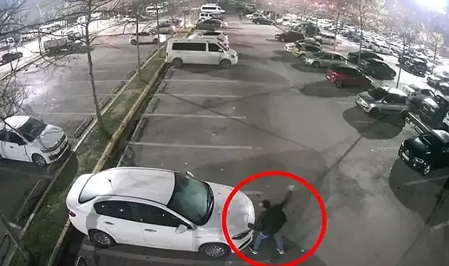 Kocaeli'de belediyeye ait açık otoparktaki 35 aracın camlarını kırıp, zarar veren kimliği belirsiz şüphelinin görüntüleri ile ortaya çıktı.