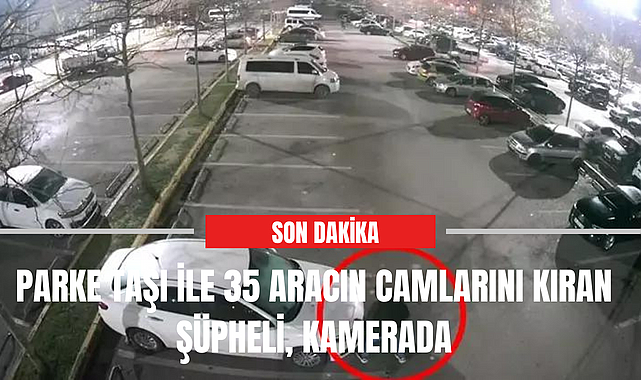 Parke taşı ile 35 aracın camlarını kıran şüpheli, kamerada