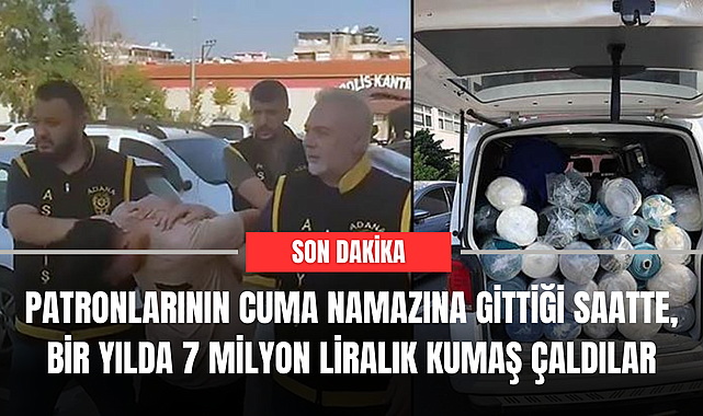 Olay, merkez Seyhan ilçesi Akkapı Mahallesi’ndeki bir tekstil atölyesinde meydana geldi. İşçiler Mustafa Nama ile Suriye uyruklu mesai arkadaşı Ahmed el-Hüseyin, bir yıl boyunca depodaki yaklaşık 7 milyon lira değerindeki 500 top kumaşı gizlice kiraladıkları kamyonete yükleyerek çaldı. Bir süre sonra iş yerindeki kumaşların sürekli eksildiğini fark eden patron Selim K., polise ihbarda bulundu. Hırsızlık ve Yankesicilik Büro Amirliği ekipleri, iş yerinde yaptığı incelemede, güvenlik kameralarının cuma günleri saat 12.00 ile 13.00 arasında kayıtta olmadığını ve o saatlerde mekanın çevresinde bir kamyonetin bulunduğunu belirledi. Kamyonetin izini süren ekipler, Nama ile el-Hüseyin’in, patron ve diğer çalışanların cuma namazına gitmelerini fırsat bilip, hırsızlığı gerçekleştirdiklerini saptadı. Bu tespitler üzerine harekete geçen ekipler, şüphelileri gözaltına aldı.Emniyete götürülen Mustafa Nama, ifadesinde, “Patron ve işçilerin namaza gittiği saatlerde hırsızlığı yaptık. Borcum olduğu için çalıp, değerinin altına satıyorduk” dedi. Ahmed el-Hüseyin ise sadece kamyoneti ve alıcıyı ayarladığını öne sürdü.Emniyetteki işlemlerinin ardından adliyeye sevk edilen Mustafa Nama ve Ahmed el-Hüseyin, çıkarıldıkları mahkemede tutuklandı. Kumaşların bir kısmı ise bulunup, sahibine teslim edildi.