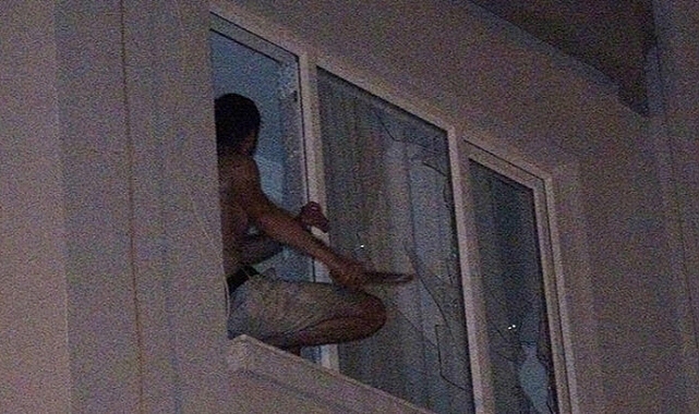 Antalya'da psikolojik rahatsızlıkları bulunan Emre S. (28), elinde bıçakla binanın 2'nci kat penceresine çıkarak, kendisine zarar vereceğini söyledi. Polisin biber gazlı müdahalesi sonrası 1'inci katın korkuluklarına tutunan Emre S., zemine düşüp yaralandı.