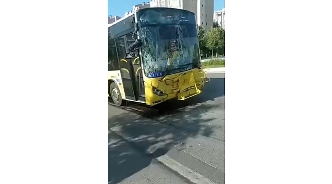 Görüntülerde; minibüsteki kadın yolcunun araçtan indiği ardından İETT otobüsünün çarpmasıyla bir yolcunun yere düştüğü ve diğer yolcuların ise kafalarını tutarak araçtan indiği görülüyor.