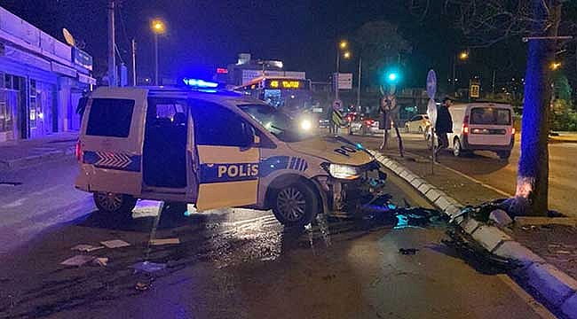 zmir'in Konak ilçesinde kontrolden çıkan polis otosu refüjdeki ağaca çarptı. Kazada araçtaki 2 polis memuru yaralandı.