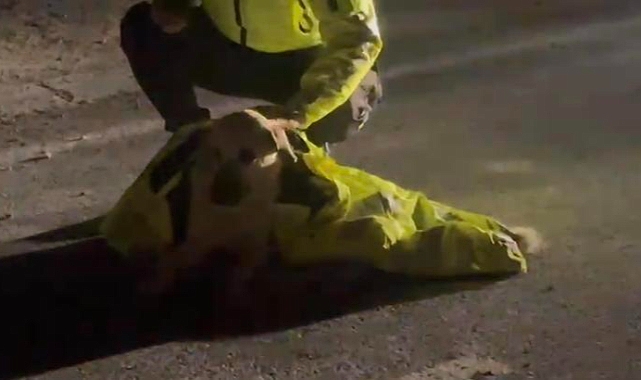 Deniz Mahallesi’nde akşam saatlerinde devriye görevi yapan polis ekipleri, yol üzerinde hareketsiz halde yatan yaralı köpeği fark etti. Ekipler, olası bir kazanın önüne geçmek amacıyla çevrede güvenlik önlemi alırken, durumu Hatay Büyükşehir Belediyesi ekiplerine bildirdi. Yaralı köpeğin üşümemesi için bir polis memuru montunu üzerine örttü. Polis ve belediye görevlileri gelinceye kadar köpeğin başında bekledi.Olay yerine gelen Büyükşehir Belediyesi ekiplerine teslim edilen köpek, tedavi edilmek üzere hayvan barınağına götürüldü. Polis ekiplerinin duyarlı davranışı, çevredeki vatandaşların takdirini topladı.