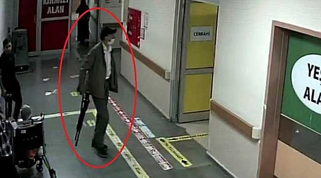 Pompalı tüfekle yaraladığı kişiyi öldürmek için hastaneye gelen saldırgan, elindeki silahla son anda polislere yakalandı.