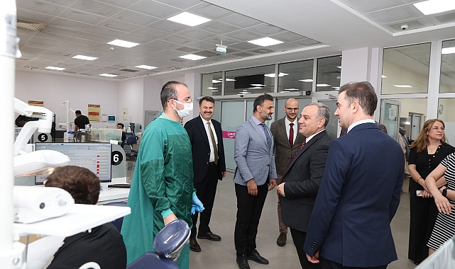 ERÜ Rektörü Prof. Dr. Fatih Altun, beraberinde Rektör Yardımcıları Prof. Dr. Oktay Özkan ve Prof. Dr. Cevdet Kırpık, Genel Sekreter Prof. Dr. İbrahim Narin, Diş Hekimliği Fakültesi Dekanı Prof. Dr. Hüseyin Sinan Topçuoğlu ve Genel Sekreter Yardımcısı Dr. Oktay Musa Kayırga ile Diş Hekimliği Fakültesi Hastanesi’nde görevli diş hekimleri, öğrenciler ve idari personel ile bir araya gelerek, çalışmaları hakkında bilgi aldı.