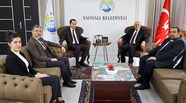 Kayseri Üniversitesi Rektör Yardımcısı Prof. Dr. Ertuğrul Şahmetlioğlu, Yahyalı Meslek Yüksekokulu Müdürü Onur Özsolak ile birlikte Yahyalı Belediye Başkanı Esat Öztürk'ü makamında ziyaret ederek, bilgilendirme toplantısı yaptı.
