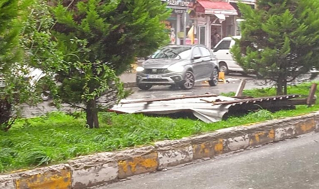 Rize'nin Pazar ilçesinde etkili olan fırtına nedeniyle binanın çatısından sökülen sac parçası yola savuruldu. Ardeşen ilçesinde de kök kısmından sökülen ağaç, park halindeki taksinin üzerine devrildi.
