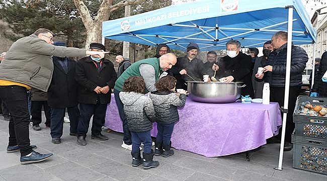 Melikgazi Belediye Başkanı Dr. Mustafa Palancıoğlu, sabah namazı sonrasında Hunat Camisi'nin avlusuna kurulan stantda çorba ikram ettiklerini söyledi.