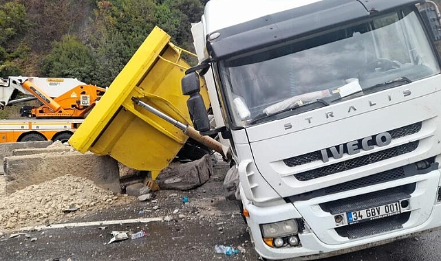Kaza, saat 16.00 sıralarında, D-650 yolunun Kızılkaya mevkisinde meydana geldi. Nevzat Arı idaresindeki 34 DMF 608 plakalı çöp kamyonu, yağmurda kayganlaşan yolda kontrolden çıkıp devrildi. Aynı yöne giden Ömer Fındık yönetimindeki 03 HS 078 plakalı TIR, kamyona çarpmamak için manevra yapınca karşı şeride geçip, Kemal Kot idaresindeki 55 AFB 136 plakalı TIR'la kafa kafaya çarpıştı. Kaza yapan araçlara çarpmamak için manevra yapan sürücüsünün ismi öğrenilemeyen 34 GBV 001 plakalı hafriyat kamyonu da kontrolden çıkıp devrildi. Olay yerine polis ve sağlık ekipleri sevk edildi. Yaralanan çöp kamyonu sürücüsü Nevzat Arı, sağlıkçıların kaldırdığı hastanede tedaviye alındı. Kaza nedeniyle D-650 yolu çift şeritli olarak ulaşıma kapandı. Yolda uzun araç kuyrukları oluştu. Kazaya karışan araçların yoldan kaldırılması için çalışma başlatıldı.