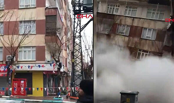 Kahramanmaraş merkezli, 10 ili vuran depremin ardından Şanlıurfa Bahçelievler Mahallesi'nde 6 katlı bir binanın yıkılma anları kameralara yansıdı.