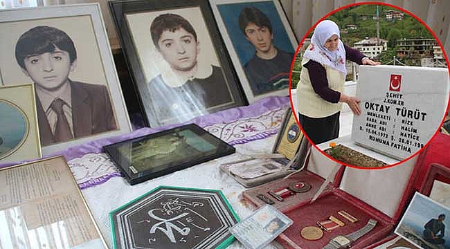 Diyarbakır'da 28 yıl önce şehit düşen Jandarma Komando Er Oktay Türüt'ün (22) anısını oğlunun odasında yaşatan anne Hatice Türüt, bu yıl da Anneler Günü'ne buruk girdiğini söyledi. Oğlunun fotoğraflarına bakıp, gözyaşı döken Türüt, "Odasına gelir, dertleşir, konuşur ve çıkarım. Resimlerini ve ödüllerini koyduk. O, hala burada. Eşyalarının olduğu valiz var; hiç açamadım. Yatağının altında saklıyorum" dedi.