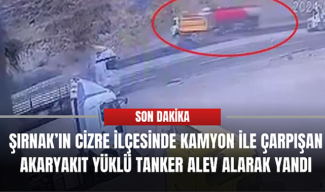 Şırnak’ın Cizre ilçesinde kamyon ile çarpışan akaryakıt yüklü tanker alev alarak yandı. Güvenlik kamerasına yansıyan kazada tanker şoförü Reşad Yavuz hayatını kaybetti, kamyon şoförü yaralandı.Kaza, saat 14.00 sıralarında Cizre ilçesi Nusaybin kara yolu 6’ncı kilometresindeki Mehmetçik Çeşmesi mevkiinde meydana geldi. Reşad Yavuz idaresindeki akaryakıt yüklü tanker, yan yoldan çıkan sürücüsünün ismi ve plakası öğrenilmeyen kamyonla çarpıştı.Kazayla birlikte tanker, kupa kısmından alev alarak yanmaya başladı. İhbar üzerine kaza yerine sağlık, itfaiye, polis ve jandarma ekipleri sevk edildi. Gelen ekipler, tanker şoförü Reşad Yavuz’un yaşamını yitirdiğini belirlerken, yaralanan kamyon şoförü ise Cizre Devlet Hastanesi’ne kaldırılarak tedaviye alındı.Yangın itfaiye ekiplerinin müdahalesiyle kontrol altına alınarak söndürüldü. Yavuz’un cansız bedeni otopsi için morga götürüldü.Güvenlik kamerasına da yansıyan kazayla ilgili soruşturma başlatıldı.
