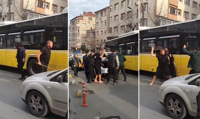 Olay, dün öğlen saatlerinde Gülbahar Mahallesi'nde meydana geldi. Cep telefonu kamerasına yansıyan olayda, iddiaya göre iki sürücü arasında trafikte yol verme tartışması yaşandı. Taraflardan birinin yakını, elinde çekpasla küfrederek gelip, diğer sürücüye vurdu.