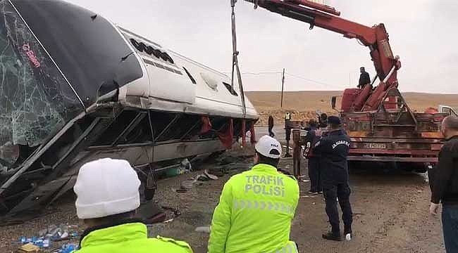 Sivas'ta düzensiz göçmenleri taşıyan otobüs, kontrolden çıkarak devrildi.