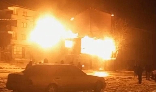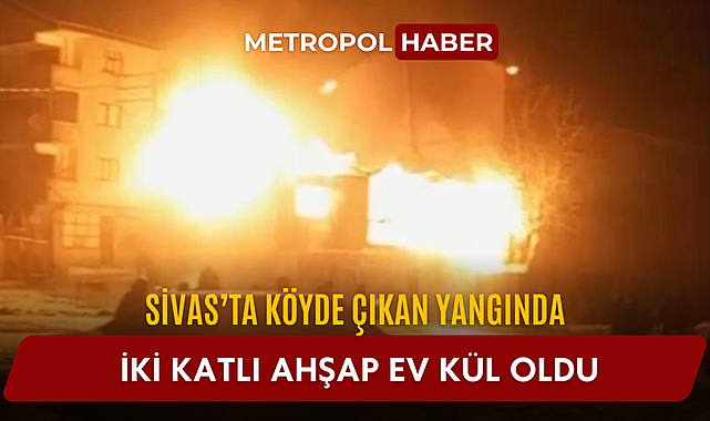 Sivas'ta köyde çıkan yangında iki katlı ahşap ev kül oldu