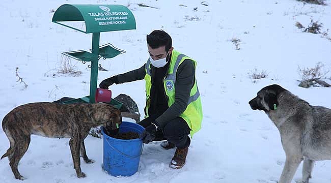 Konuyla ilgili kısa bir değerlendirmede bulunan Talas Belediye Başkanı Mustafa Yalçın, “Hayvan dostlarımızın daima yanında oluyoruz. Yaz, kış dört mevsim boyunca onların yiyecek bulmaları için daha önceden ilçe sınırları içinde belirlediğimiz noktalara hayvan yemleri ve yiyecek maddeleri bırakıyoruz.” dedi.