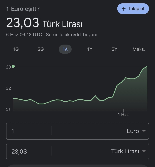 Ekonomi Yayınlanma: 06 Haziran 2023 - 11:32 Güncelleme: 06 Haziran 2023 - 11:35 Son Dakika: Euro ilk kez rekor kırdı! Ekonomi 06 Haziran 2023 - 11:32 Güncelleme: 06 Haziran 2023 - 11:35 Yorumlar TAKİP ET A Büyüt A Küçült Yorumlar Euro güncel satış fiyatı anlık olarak 23,1773 TL, Euro alış fiyatı ise 23,1457 TL üzerinden işlem görmektedir. # Euro YORUMLAR adlı kullanıcıya cevap x Gönder İlginizi Çekebilir Dolar bugün kaç TL? 25 Nisan Cumartesi 2026 dolar ne kadar? Euro bugün kaç TL? 25 Nisan Cumartesi 2026 euro ne kadar? Bakan Şimşek: Fiyat istikrarını sağlamaya yönelik politikalarımıza devam edeceğiz Bugün çeyrek altın kaç TL? 24 Nisan Cuma 2026 Gram, tam, Cumhuriyet, Kapalıçarşı anlık fiyatlar Son Haberler Telefonuna gelen reklamla mobil bankacılık üzerinden dolandırıldı,... Kayserili sporculardan Manisa’da önemli başarı Kayserispor, Rizespor maçıyla kritik mücadeleye çıkıyor Ortak düzenlenen operasyonda,esrar (marihuana) ele geçirildi. Yahyalı’da tarihi kale ve surları doğasıyla dikkat çekiyor Babala Tv'nin sahibi Oğuzhan Uğur, balkonuna bırakılan mermiyi paylaştı Babala Tv'nin sahibi Oğuzhan Uğur, balkonuna bırakılan mermiyi paylaştı