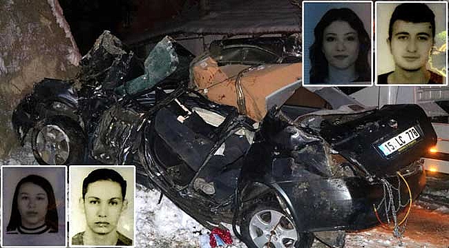 Burdur'da, yol kenarındaki bordürlere ve istinat duvarına çarpıp, hurdaya dönen otomobilde 4 kişi, hayatını kaybetti.
