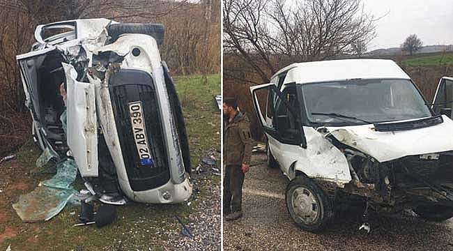 Kaza, sabah saatlerinde Kahta- Siverek kara yolunun 11'inci kilometresinde meydana geldi. Köy okullarında görevli öğretmenleri taşıyan Mehmet Yücekaya (28) yönetimindeki 02 AAR 986 plakalı servis minibüsü, Erikdere köyü yakınlarında Yasir Can'ın (35) kullandığı 02 ABV 390 plakalı hafif ticari araç ile bilinmeyen nedenle çarpıştı.
