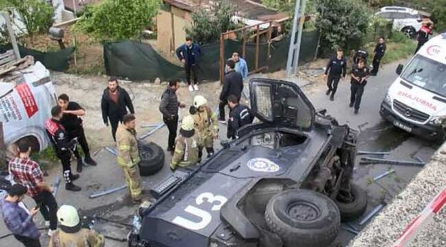 SARIYER'de, bilinmeyen nedenle sürücüsünün kontrolünü kaybettiği polis zırhlı aracı, kaldırıma çarpıp takla attıktan sonra duvarı aşarak alt yola düştü. Kazada yaralanan 2 polis hastaneye kaldırıldı.