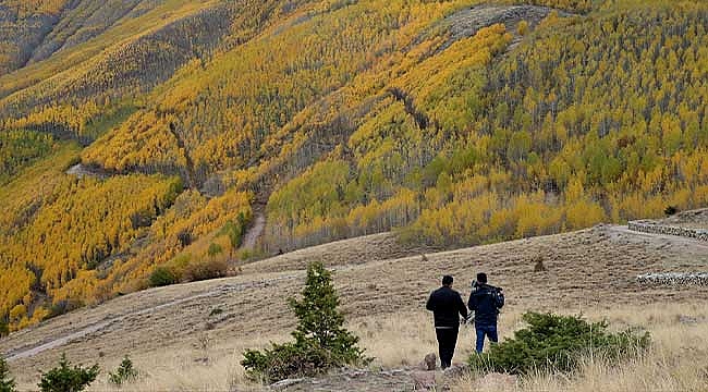 Kayseri Orman Bölge Müdürlüğü sınırlarında yer alan Erciyes'in yamaçlarındaki titrek kavak ağaçları, sonbaharda sarı, turuncu ve kırmızının tonlarını sunuyor.