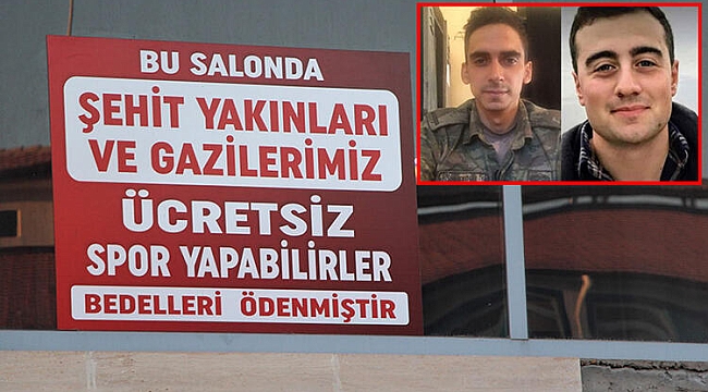 Elazığ'da, yetiştirdiği 2 öğrencisi şehit olan spor salonu işletmecisi ve antrenör Fatih Sayer (45), şehit ve gazi yakınlarına ücretsiz hizmet veriyor. Sayer, salonun camına da 'Bu salonda şehit yakınları ve gazilerimiz ücretsiz spor yapabilirler. Bedelleri ödenmiştir' yazılı afiş astı.