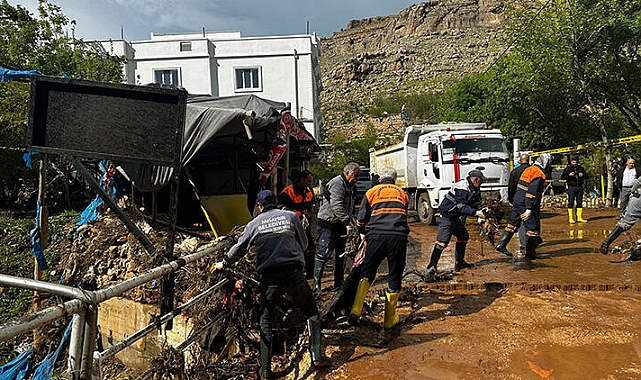 Mardin'in Nusaybin ile Midyat ilçeleri arasında bulunan ve 4 gün önce dere taşmasıyla su altında kalan Beyazsu Mesire Alanı’nda temizleme çalışmaları devam ediyor.