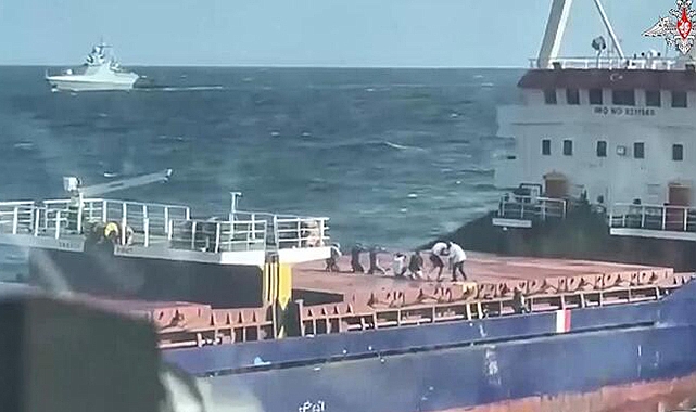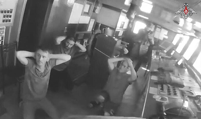 Rus askerlerinin, Karadeniz’de Ukrayna’nın İzmail limanına sefer yapan kuru yük gemisi ‘Sukru Okan’ı durdurarak gemiye baskın düzenlediği anlar saniye saniye kaydedildi.