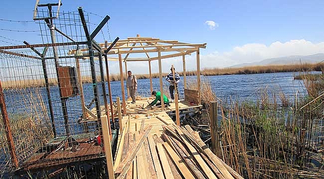 Kayseri'deki Sultan Sazlığı Milli Parkı'nda 6 Nisan'da çıkan yangında zarar gören ahşap yürüyüş yolu ile gözeteme kulübesi onarılıyor.Kayseri Doğa Koruma ve Milli Parklar Müdürlüğünden yapılan yazılı açıklamaya göre, 24 bin 523 hektar alana sahip milli parkta çıkan yangının yaraları sarılıyor.Kısmen yanan 1200 metre ve 2 bin 300 metre uzunluklarındaki ahşap yürüyüş yollarının zarar gören kısımları tadilat ediliyor.Tamamen yanan kuş gözetleme kulübesinin yenisinin inşasına da başlandı.Sultan Sazlığı Milli Parkı'nda bulunan yürüyüş yollarından biri suyu tatlı olan Eğri Göl'e, diğeri ise suyu tuzlu Tuzla Gölü'ne bağlanıyor.