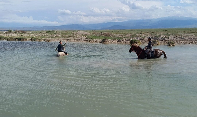 Sultan Sazlığında su içerisinde at yarışına da başlandı