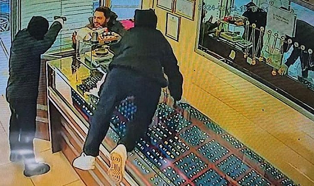 İki soyguncunun tabancayla çalışanı tehdit ettiği ve esnafların soyguncuları etkisiz hale getirdiği anlar, güvenlik kamerasıyla saniye saniye görüntülendi. Görüntülerde, şüphelilerin kuyumcuyu soymaya çalıştığı sırada, esnafın içeri girdiği görülüyor. Esnafla şüpheliler arasında uzun süre arbede yaşanıyor. "ESNAF ETKİSİZ HALE GETİRİP POLİSE VERİYOR"