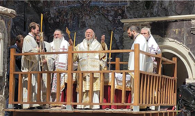 Trabzon'un Maçka ilçesinde, Sümela Manastırı'nda, Fener Rum Patriği Bartholomeos'un yönettiği 10'uncu ayin gerçekleştirildi. Daha önce 26 Ekim'de yanlış kutlandığı gerekçesi ile 2022 yılında 15 Ağustos tarihi resmileştirilen Trabzon’un fethine denk getirildiği öne sürülüp, tartışmalara neden olan ayinde konuşan Bartholomeos, "Bugünkü ayinimizde bir kez daha dünya barışı için yüce Allah'a yakarırken bu güzel Karadeniz'in etrafında toplanan tüm ülkelerin selametini diledik.'' dedi.