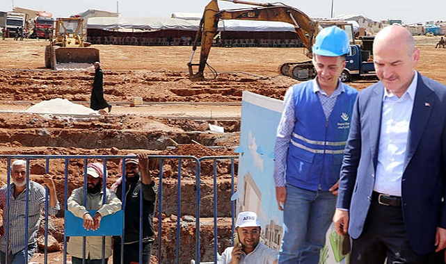 '12 İLDE GERİ DÖNÜŞLER İÇİN OFİS OLUŞTURULDU'Yapımı tamamlanacak olan konutlara Türkiye’deki Suriyelilerin yerleştirileceğini ifade eden Bakan Soylu, şöyle devam etti:"Türkiye'de bu onurlu, güvenli ve gönüllülük geri dönüş için yaklaşık 12 ayrı ilde 12 ayrı ofis oluşturulmuştur. Türkiye'de bulunan Suriyeli kardeşlerimizin sivil toplum kuruluşlarıyla, kanaat önderleriyle tam bir yıldır bunun çalışması yapılmaktadır. Kardeşlerimizin sayesinde burada yeni hayatlar yeşerecektir. Bu bölgeler savaşın, karmaşıklığın, kaosun değil; bu bölgeler ümidin, geleceğin bölgesi olacaktır ve Allah izin verirse de çok çabuk bir zaman dilimi içerisinde yaklaşık 2,5- 3 yıllık bir zaman dilimi içerisinde 240 bin konut ve 1 milyon insan bu bölgede yerleşime başlayacak, hayatına devam edecek, üretimini sağlayacak, eğitimini sağlayacak ve bu bölge bölgemizin en önemli cazibe merkezlerinden birisi haline gelecektir. Çok paranız olabilir ama vicdanınız, kalbiniz ve kardeşliğiniz olmayabilir. Katar'ın yaptığı bu hamle hem vicdan hem kalp hem de kardeşliğin bütün dünyaya haykırılmasıdır. Dünyada yeni bir dönem başlamaktadır. Mağdurlar ve mazlumlar yalnız değildir."Bakan Soylu, konuşmasının ardından törene katılanlarla butona basarak kalıcı konutların ilk temelini attı. İnşaat alanını dolaşan ve işçilerle sohbet eden Soylu, daha sonra gazetecilere bugüne kadar ülkesine dönen Suriyeli sayısının 554 bin olduğunu ve proje kapsamında da 1 milyon sığınmacının güvenli, onurlu ve gönüllü olarak Suriye’ye dönmesini hedeflediklerini söyledi.