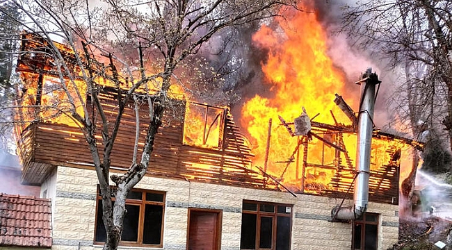 Bolu'da, Abant Tabiat Parkı'nda tadilatta olan ev, çıkan yangında kullanılamaz hale geldi