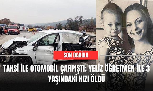 Bilecik'in Bozüyük ilçesinde taksi ile otomobilin çarpıştığı kazada öğretmen Yeliz Efe (30) ile kızı Ela Efe (3) hayatını kaybetti, eşi Raşit Efe (33) ağır yaralandı.