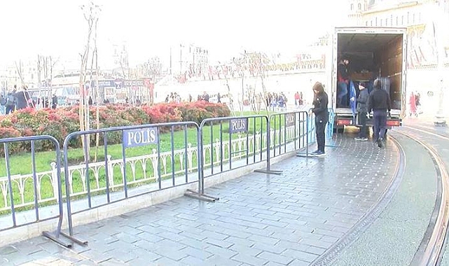 Beyoğlu'nda yılbaşı hazırlıkları kapsamında Taksim Meydanı’na demir bariyerler getirildi. Güvenlik önlemleri kapsamında İstiklal Caddesi'ne çıkan yollar ise tedbir amaçlı kapatılacak.